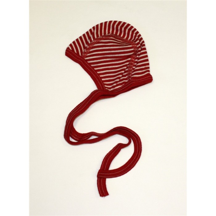 Чепчик из шелко-шерсти Cosilana красный в белую полоску