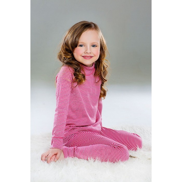 Штанишки из шерсти мериноса в полоску на резинке, вместе с водолазкой из шерсти мериноса составят отличный комплект термобелья для прогулок или активных занятий спортом.