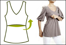 Верхняя часть блузы имеет двойной слой, с прорезями для доступа к груди, спрятанными во внутреннем слое. Для кормления верхний слой топа поднимается снизу.