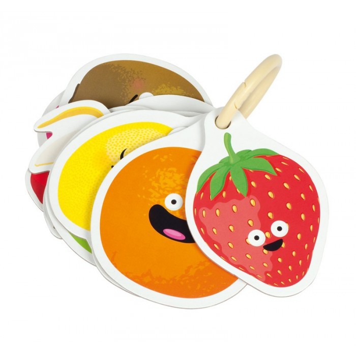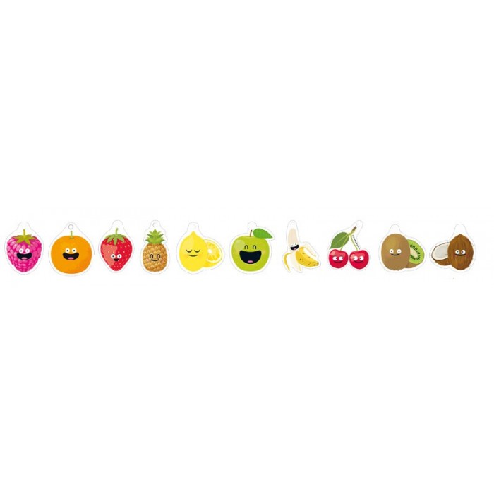 Познавательная игра для детей, веселая и интересная. Сможет ли Ваш ребенок угадать запахи самых распространенных фруктов, не глядя? Проверим? 10 карточек с цветным и смешным изображением нанизаны на пластиковое кольцо: клубника, апельсин, малина, ананас, лимон, яблоко, банан, вишня, киви, кокос. Потри карточку и понюхай. Размер карточек - 11 x 13 см. Карточки можно снимать с кольца по отдельности.