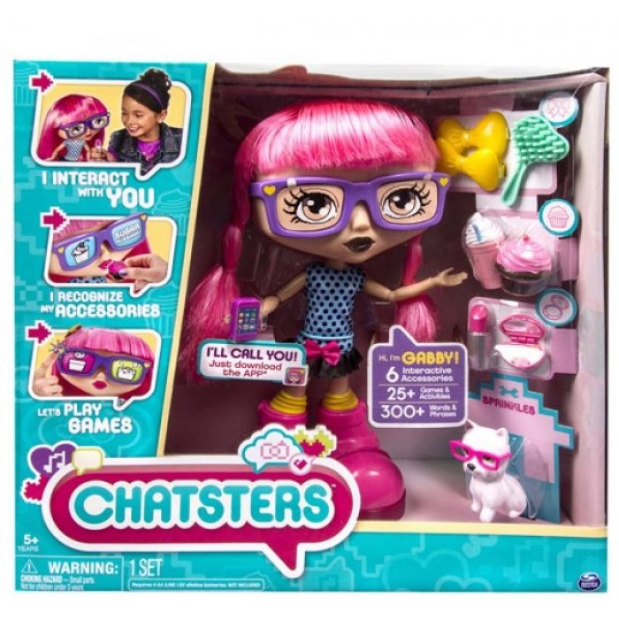 Chatsters Gabby Чатстерс Гэбби - инновационная кукла с потрясающим уровнем интерактива. Гэбби говорит по-русски (знает более 300 слов, задает вопросы), танцует под музыку, отвечает на звонки, пишет смски, играет.