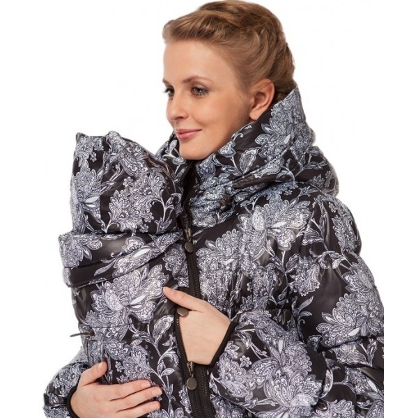 Слингокуртка "ИСЛАНДИЯ" I LOVE MUM 3 в 1 цветы на черномдля всех этапов материнства. Супер теплая и легкая куртка для русской зимы. Комфортный температурный режим до -40 градусов!!!