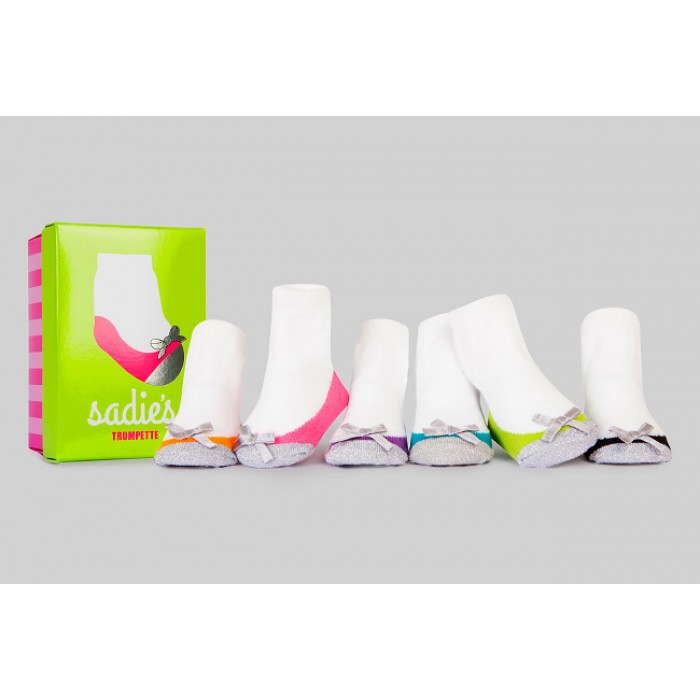 Носочки Trumpette продаются в комплекте по 6 пар разного цвета. Каждый день ножки вашего малыша будет украшать новый цвет!  На подошвах носочков нанесены противоскользящие надписи "Trumpette".