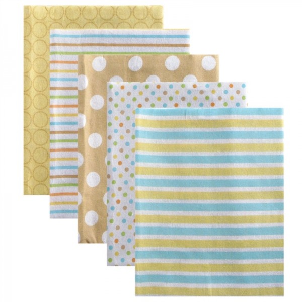 - Комплект из 5 фланелевых пеленок Luvable Friends, цвет желтый, 71x71 см
