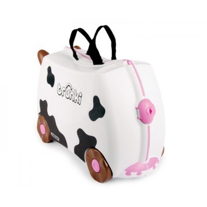 Детский чемодан на колесиках Trunki Freddie (коровка) – для маленьких непосед. Дети любят все новое, а, значит и путешествия. Но они могут быть утомительными и неинтересными для ребенка, когда нужно ждать рейса, стоять в длинных очередях в аэропорту. На чемодан Trunki всегда можно присесть, или сесть верхом и, держась за рога, ехать на нем. Чемодан имеет многофункциональный ремень — он может использоваться ребенком для перевозки чемодана, или родителями для катания ребенка или переноски Транки на плече. Размеры чемодана позволяют взять его с собой в самолет. А в чемодан можно положить все, что ребенку может понадобиться в пути - любимые книжки, игрушки, еда, одежда.