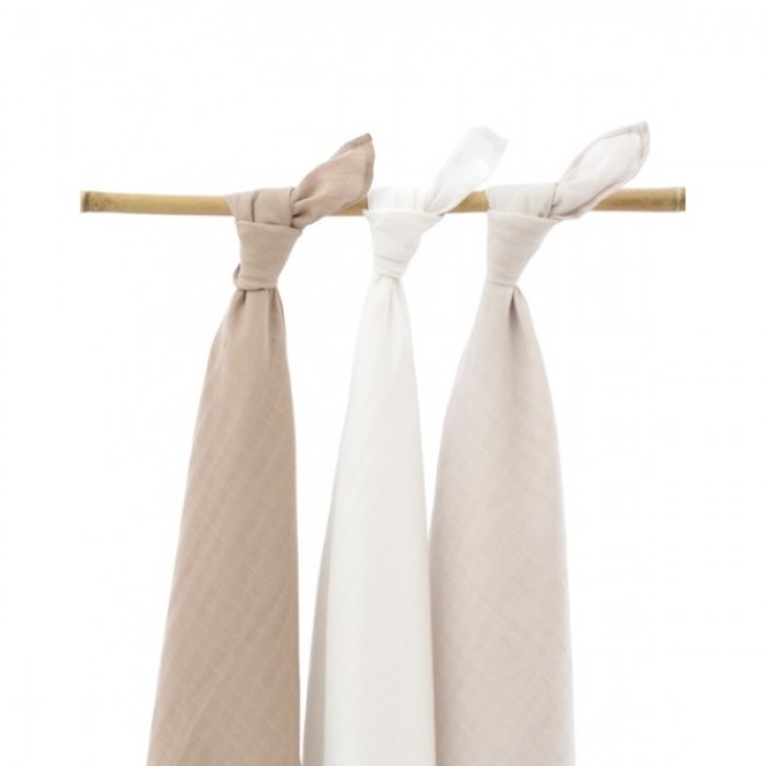 Комплект муслиновых пеленок Jollein 115х115 см, 3 шт, цвет кремовый/песочный/белая