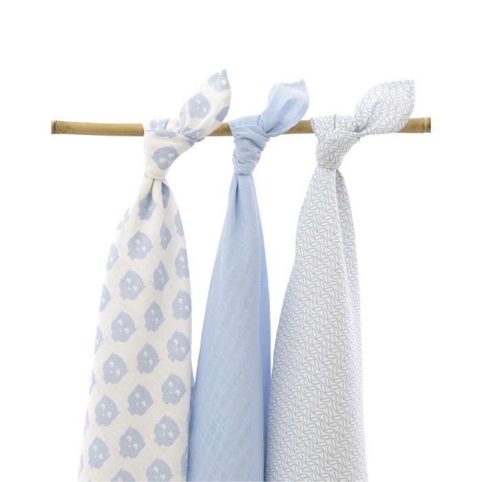 Комплект муслиновых пеленок Jollein 115х115 см Owl blue , 3 шт