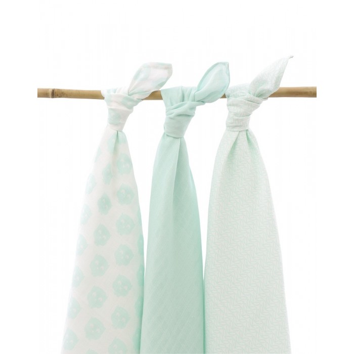 Комплект муслиновых пеленок Jollein 115х115 см Owl mint, 3 шт