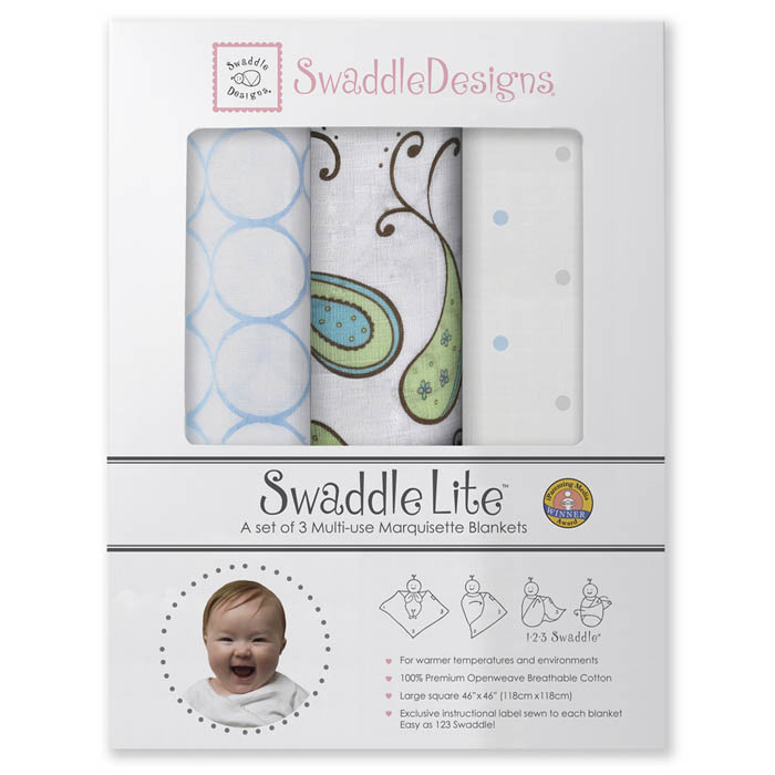 Набор из 3 пеленок серии меркизетт (тонкий хлопок) для новорожденного SwaddleLite (SwaddleDesigns) в красивой фирменной упаковке.