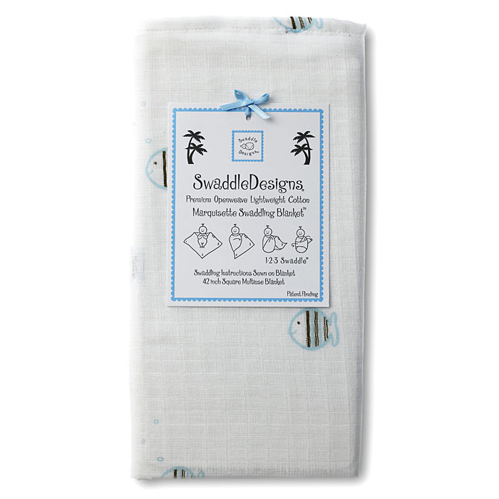 Пеленка детская тонкая SwaddleDesigns Маркизет Blue/Mocha Fish Пеленка детская тонкая SwaddleDesigns Маркизет Blue/Mocha Fish