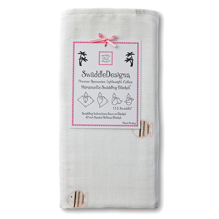 Пеленка детская тонкая SwaddleDesigns МаркизетPink/Mocha Fish Пеленка детская тонкая SwaddleDesigns МаркизетPink/Mocha Fish