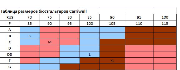 На пересечении - подходящий вам размер бюстгальтера Carriwell.