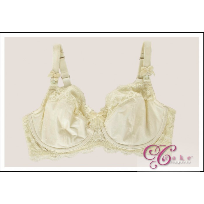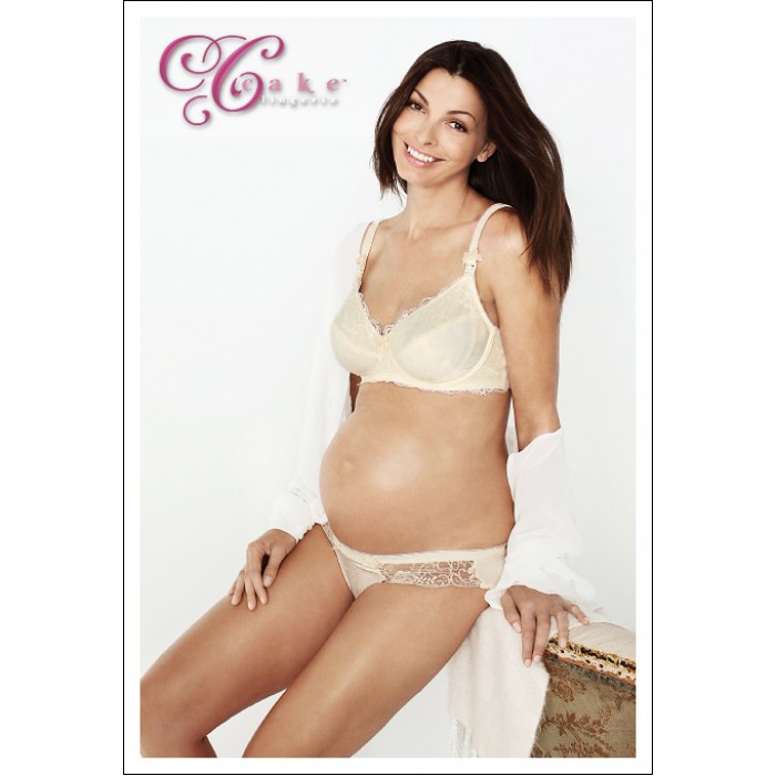 Бюстгальтер для кормления Cake Vanilla Cream - изящный и нежный, с кружевом и бантиками из тесьмы, гибкими косточками. Чашки имеют различную конструкцию для разного объема. Чашки с тонкими вкладками, изнутри отделаны хлопком под цвет бюстгальтера. Бюстгальтер хорошо регулируется для лучшего прилегания в разные периоды лактации благодаря удлинненной застежке (6 рядов крючков).