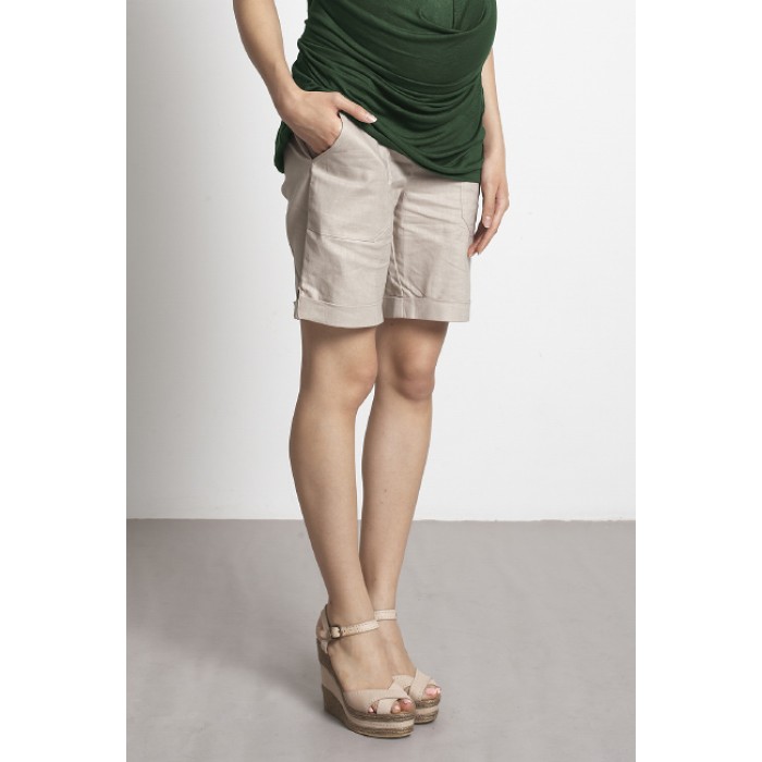 Льняные шорты для беременных и родивших Mothers en Vogue имеют заниженный пояс с эластичной резинкой