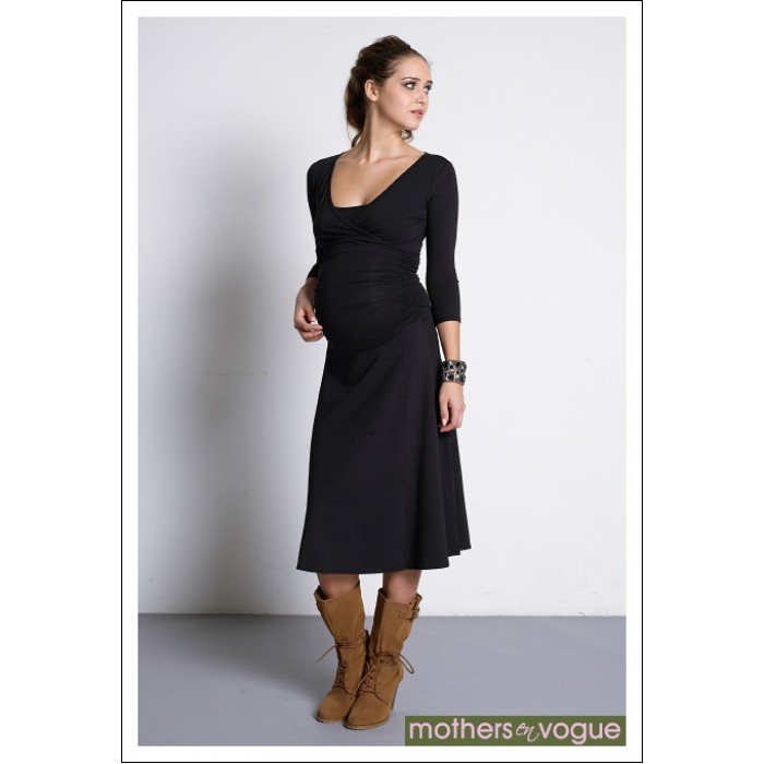 Платье для беременных и кормящих Mothers en Vogue DANA - выполнено из мягкой, струящейся ткани черного цвета. Крой платья позволяет носить его и во время беременности, и после родов. Доступ к груди - отодвигается вниз внешний слой горловины