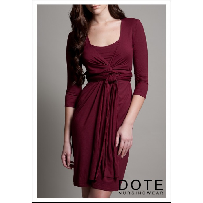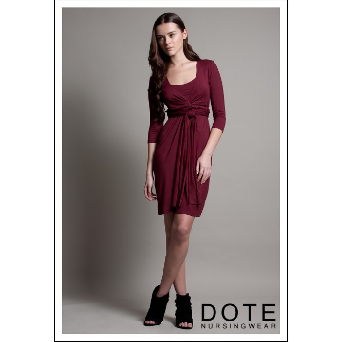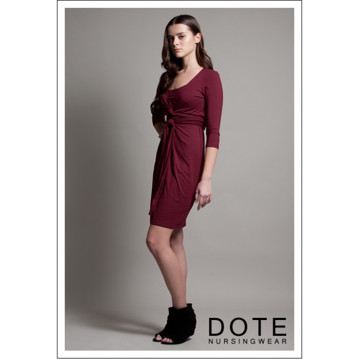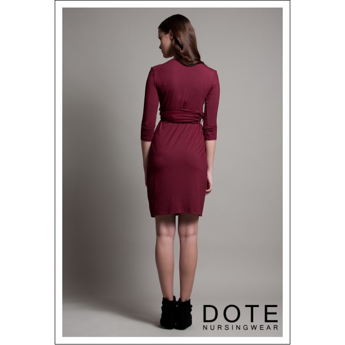 Платье для кормящих DOTE Madison - необычная модель цвета бургунди. Выполнено из высококачественного трикотажа с небольшим добавлением спандекса. Для доступа к груди горловина платья отодвигается.