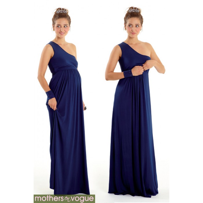 Вечернее платье для беременных и кормящих Mothers en Vogue - элегантное струящееся платье из бамбукового трикотажа. Верхняя часть топа выполнена из плотной ткани и укреплена широкой резинкой под грудью, что позволяет носить платье без бюстгалтера.