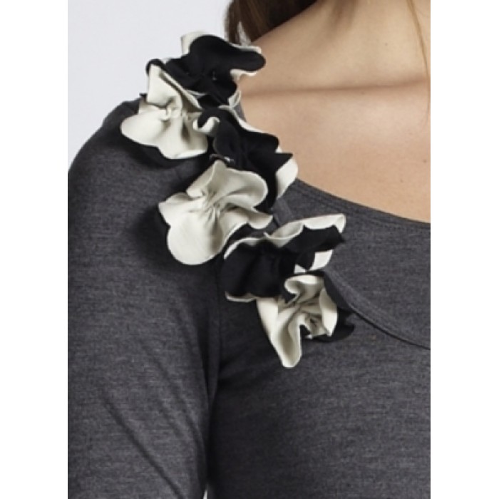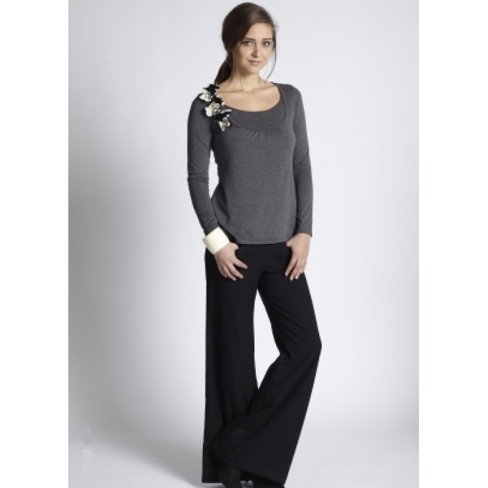Топ для кормления Mothers en Vogue Florica - элегантный стиль для современной мамы. Модель выполнена из экологичного нежного трикотажа. Корсаж декорирован ткаными цветами.Секрет кормления горловина-конверт, для кормления отодвигается вниз внешний слой горловины.