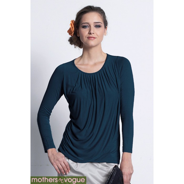 Топ для кормления Goddess Drape Mothers en Vogue, цвет черный - выполнен из экологически чистого, мягчайшего бамбукового волокна с небольшим добавлением спандекса. Топ декорирован драпировкой, спускающейся с одного плеча. Секрет кормления - разрез по центру на внутреннем слое топа.