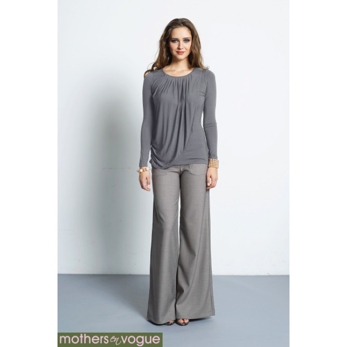 Топ для кормления Goddess Drape Mothers en Vogue, цвет серый - выполнен из экологически чистого, мягчайшего бамбукового волокна с небольшим добавлением спандекса. Топ декорирован драпировкой, спускающейся с одного плеча. Секрет кормления - разрез по центру на внутреннем слое топа.