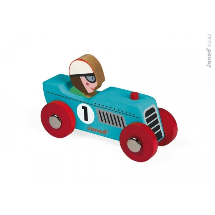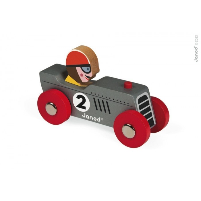 Игрушка "Машинка ретро", производства французской компании Janod, предназначены для детей старше 1 года. Яркая и практичная машинка, изготовлена из дерева. Её размер 8,7х3,5х5,5 см. У нас представлены машинки двух цветов — синяя и серебристая. У игрушки красные колеса с металлическими дисками, как у настоящей машинки. На боках нарисован черный номер на белом фоне. У синей машинки — номер 1, а у серебристой — номер 2. Машинка стилизована под ретро автомобиль Так же нарисован радиатор спереди и декоративная решетка крыла.