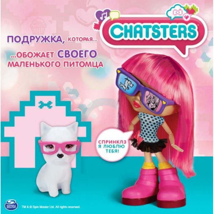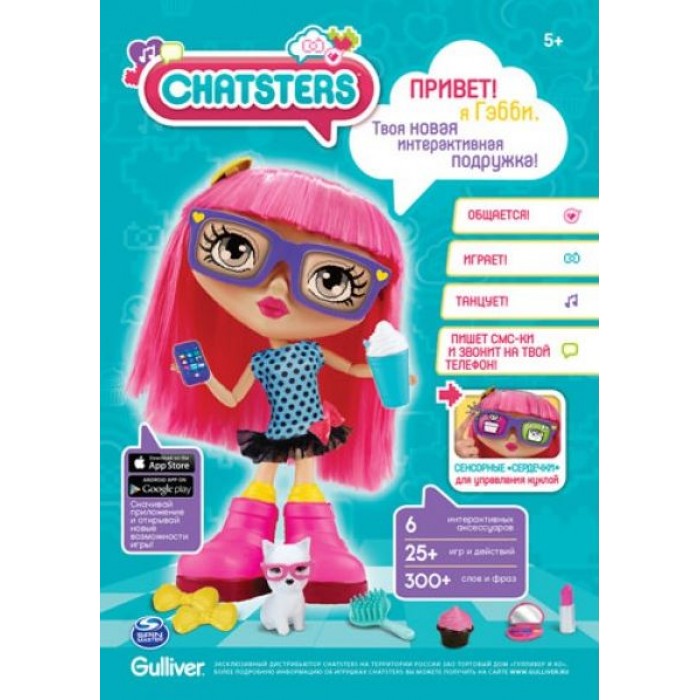 Chatsters Gabby Чатстерс Гэбби - инновационная кукла с потрясающим уровнем интерактива. Гэбби говорит по-русски (знает более 300 слов, задает вопросы), танцует под музыку, отвечает на звонки, пишет смски, играет.