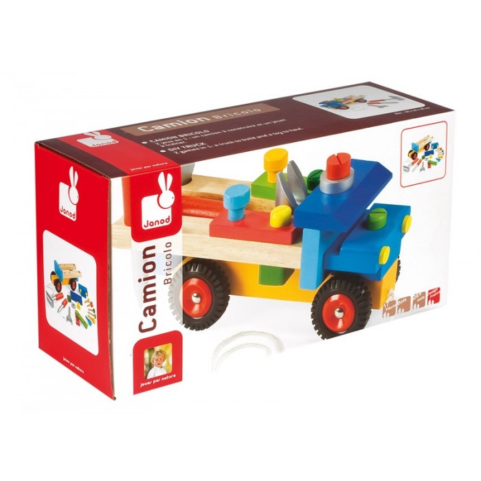 Каталка-машина и конструктор одновременно "Грузовик Сделай сам", Janod - состоит из 17 разборных деталей.