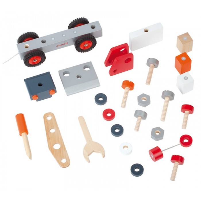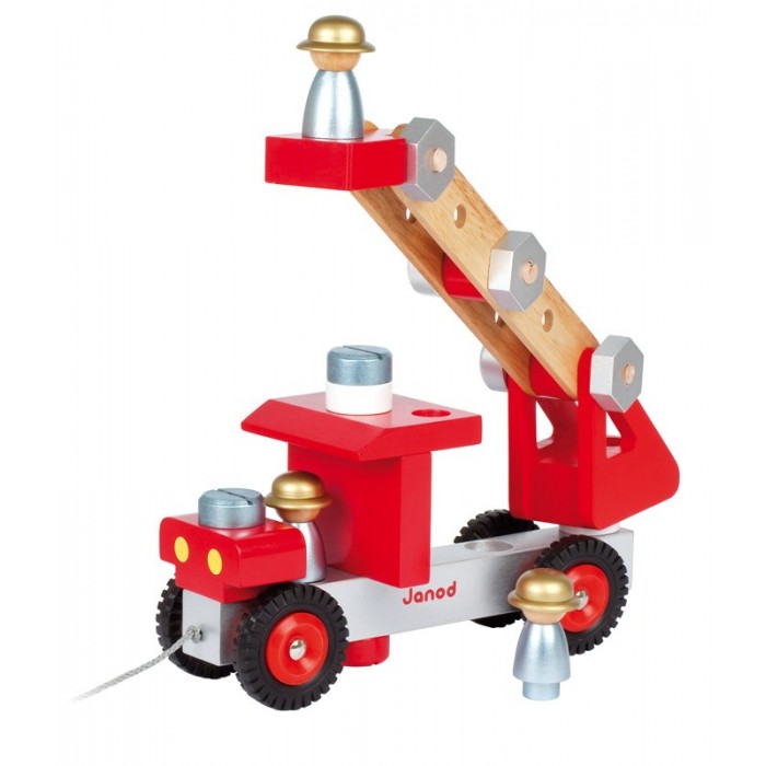 Каталка-машина и конструктор одновременно "Пожарная машина", Janod. Грузовик состоит из 27 разборных деталей. Большая машина - 31 см, имеет резиновые колеса, как у настоящей машины. Длинная лестница и 3 пожарных. Малышу будет интересно не только возить машину за собой, но и просто разбирать и собирать снова, играя дома или на детской площадке. Благодаря разноцветным деталям с ребенком можно изучать цвет. Такая привлекательная по цвету машина-каталка выглядит очень красиво. Пожалуйста, посмотрите внимательно фотографии, чтобы лучше представить каталку "Пожарная машина". Это замечательная деревянная машинка для мальчика, которую можно не только возить на веревочке, как обычную каталку, а еще собирать и разбирать как настоящий конструктор. Машинка отлично подходит для игры дома или на улице. Особенность данной модели, в том, что это не просто каталка, а еще и самый настоящий конструктор.