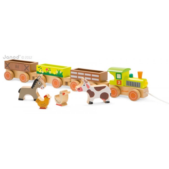 Детская каталка - веселый поезд на веревочке от французской компании Janod может стать одной из самых любимых игрушек Вашего малыша. Как здорово везти за собой длинный паровозик с разноцветными вагончиками! А если в нем еще и едут пассажиры-зверушки, то восторгу ребенка просто не будет предела. Он сможет почувствовать себя самостоятельным и ответственным машинистом. Эта забавная каталка-паровоз поможет малышу изучить цвета и формы, научит сортировать элементы по назначению.