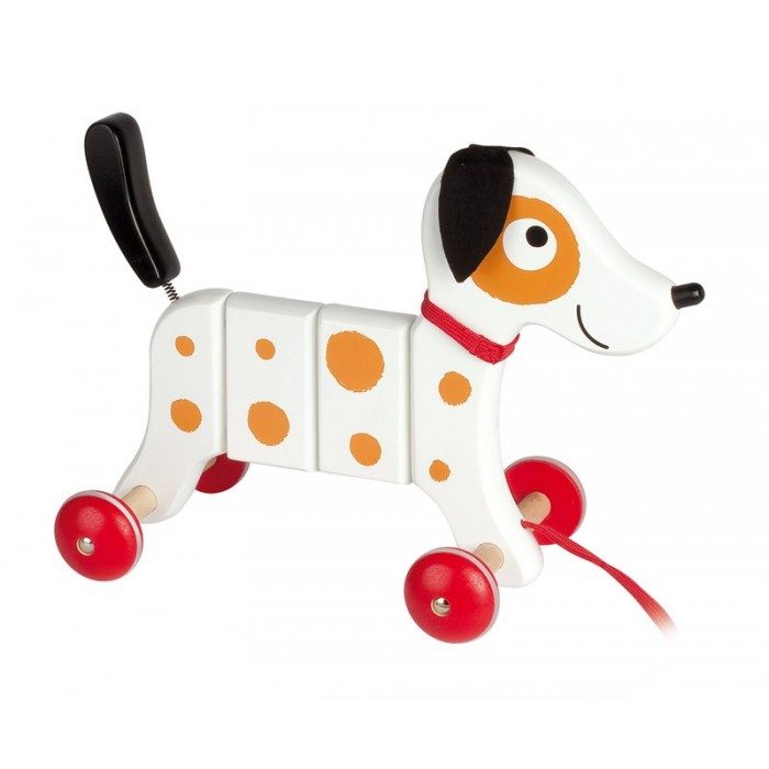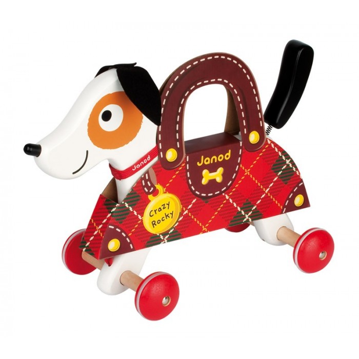 Кто из малышей не мечтает о домашнем животном? Если Вы по каким-то причинам не можете завести дома живого зверька, то в некоторой степени его может заменить игрушечная собачка-каталка от французской компании Janod. Этот добрый и милый домашний питомец не лает и не кусается. Но при этом он очень подвижный и игривый – когда ребенок везет его на веревочке, песик весело извивается и преданно виляет хвостиком на пружинке. С ним можно играть дома, а можно выводить гулять на улицу. Его туловище состоит из нескольких ячеек, сделанных из натурального дерева, а симпатичные черные ушки из высококачественной ткани. Игрушка достаточно устойчива, имеет оригинальный дизайн и приятную расцветку. Она упакована в необычную подарочную сумочку с ручками из плотного картона.