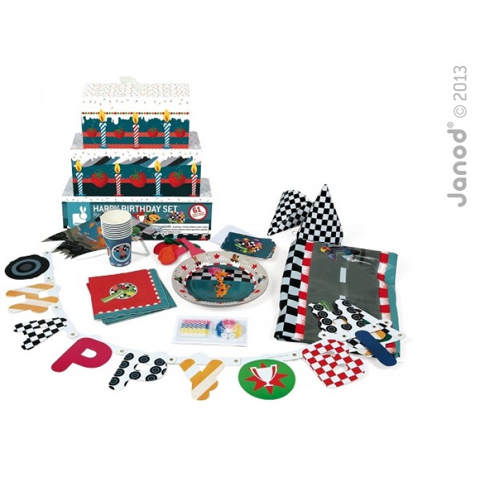 Набор для детского праздника "Автогонки", 61 шт, производства французской компании Janod, предназначен для детей от 3 лет. Организовать веселый праздник для детей — нет ничего проще. Определитесь какая тема будет наиболее интересна для гостей вашего ребенка и приобретайте набор для детского праздника. В него входит все самое необходимое для материального обеспечения праздника, а от вас требуется только довольно просторное помещение для веселых игр, хорошее настроение и вкусный торт.