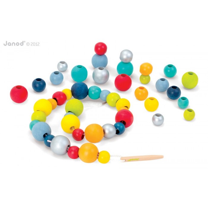 Шнурок для нанизывания "Бусы", 48 шт. Многофункциональная игрушка для детей от 3 лет. Игрушка сделана из натуральных материалов. В комплект входит: шнурок - прочная веревка с деревянной иголкой и 48 разноцветных деревянных шариков. Все элементы окрашены естественными цветами и специальными водорастворимыми красками, которые безопасны для детей. Используются основные цвета и оттенки: красный, желтый, оранжевый, зеленый, салатовый, синий, голубой, серебристый. Кроме того, шарики разного размера. Процесс нанизывания способствует развитию мелкой моторики. Играя, ребенок повторяет основные цвета, понятия больше-меньше, учится обобщать. Игрушка упакована в круглую пластиковую сумочку с ручками для переноски. Удобно хранить. Красивая подарочная упаковка.