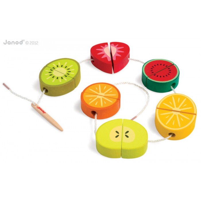 Шнурок для нанизывания "Фрукты", 12 шт. Многофункциональная игрушка для детей от 3 лет. Игрушка сделана из натуральных материалов. В комплект входит: шнурок - прочная веревка с деревянной иголкой и 12 деревянных элементов на тему фрукты. Все элементы окрашены естественными цветами и специальными водорастворимыми красками, которые безопасны для детей. Процесс нанизывания способствует развитию мелкой моторики. Играя, ребенок повторяет основные цвета, формы, названия предметов и учится обобщать. Изучаем фрукты, ягоды, понятия часть-целое. Игрушка упакована в круглую пластиковую сумочку с ручками для переноски. Удобно хранить. Красивая подарочная упаковка.