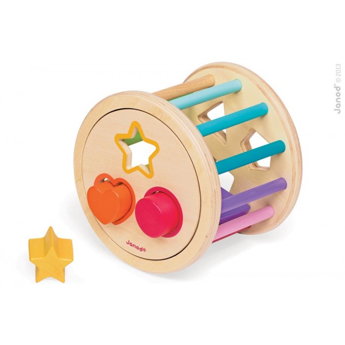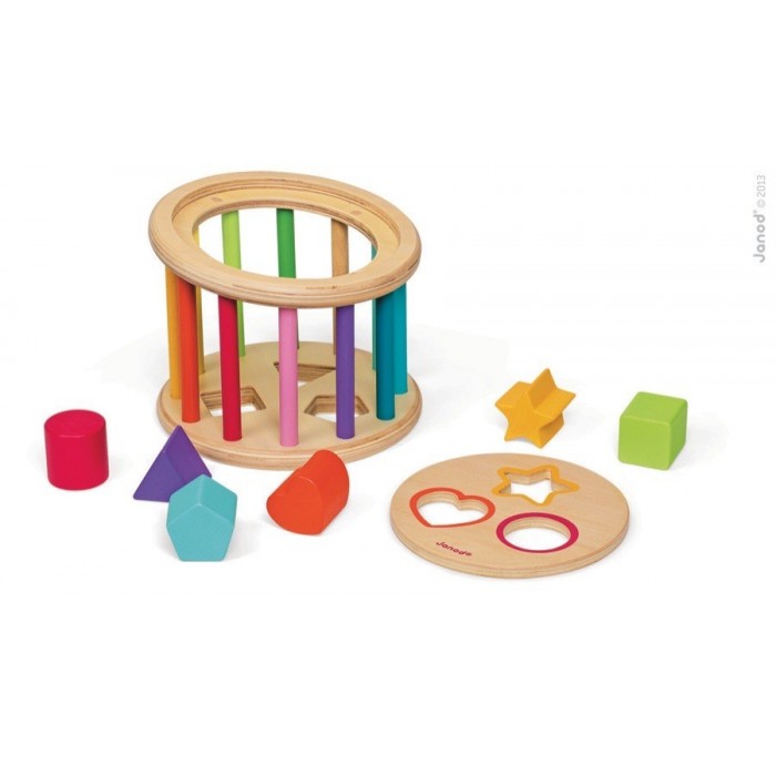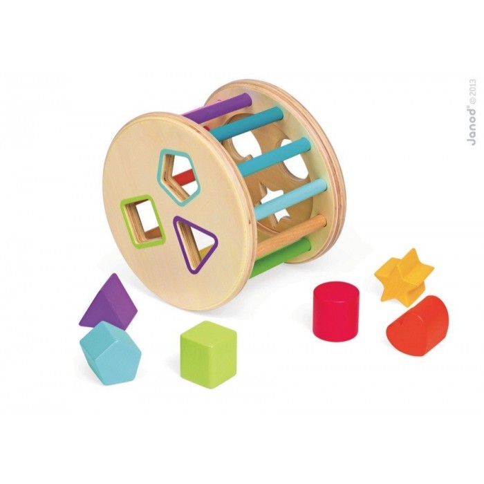 Сортер "Колесо", предназначен для детей от 1,5 лет. Эта игрушка многофункциональна. Играя, ребенок повторяет основные цвета, формы, учится обобщать, считать и сортировать. Игрушка представляет собой два круглых диска с отверстиями разной формы, которые соединены при помощи разноцветных цилиндров разной длинны. Благодаря этому, диски расположены не параллельно друг к другу, и траектория движения конструкции получается не прямолинейной. Каждое отверстие по контуру обведено тем же цветом, что и деталь, которая для этого отверстия подходит. Используются основные цвета: зеленый, желтый, красный, оранжевый, синий, сиреневый. Задача ребенка научиться сортировать элементы игрушки по цветам и форме. Фигурки легко входят в соответствующие отверстия, но только если подойдут по форме. А достать их можно через крышку в одном из дисков, которая держится при помощи магнитов. И кроме того, игрушка так весело катится, что делает процесс обучения радостным и увлекательным.
