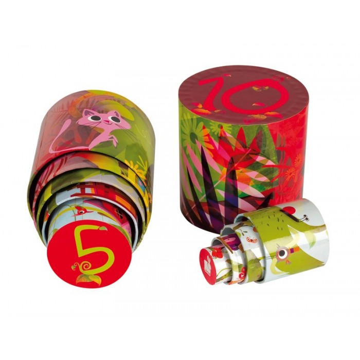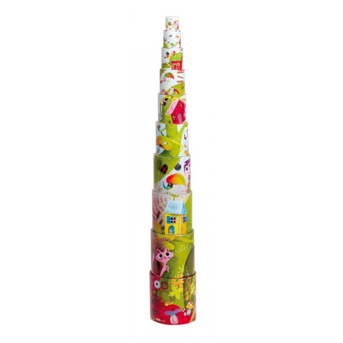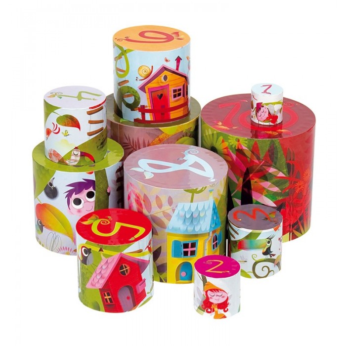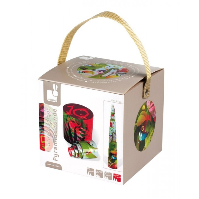 Пирамидка круглая «Волшебное дерево», производства французской компании Janod, предназначена для малышей от 1 года. Классическая пирамидка выполнена из картона. Все 10 элементов имеют форму цилиндра и складывается по принципу матрешки: маленькая часть помещается внутрь более большой - игрушка не занимает много места. Диаметр основания самого большого элемента 13,5 см. Высота пирамидки - 87 см. Если собрать пирамидку в правильной последовательности, то перед вами вырастает волшебное дерево, на ветках которого уютно расположились домики сказочных персонажей. Они мирно уживаются не только друг с другом, но и с другими обитателями леса. На торцах элементов изображены цифры — порядковые номера. Играя, ребенок получает представление о форме, учится сортировать по размеру. Запоминает основные цвета. А по мере роста ребенка, вы сможете возвращаться к этой игрушке, и учиться считать. А так же придумывать свои собственные истории про волшебное дерево.