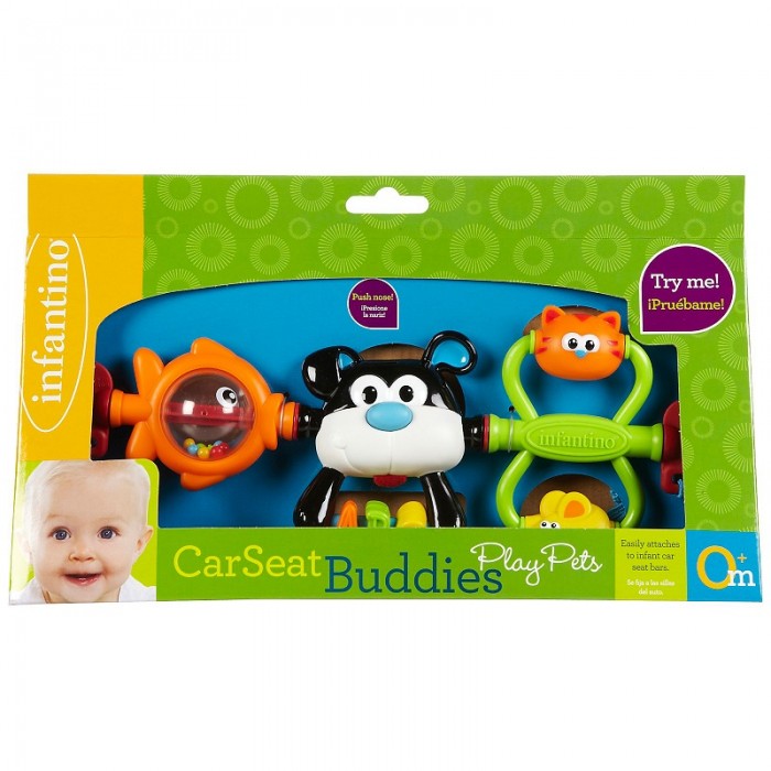 Дружная Компания - это вращающиеся Кот и Мышка, прозрачная Рыбка-погремушка и музыкальный Пес.