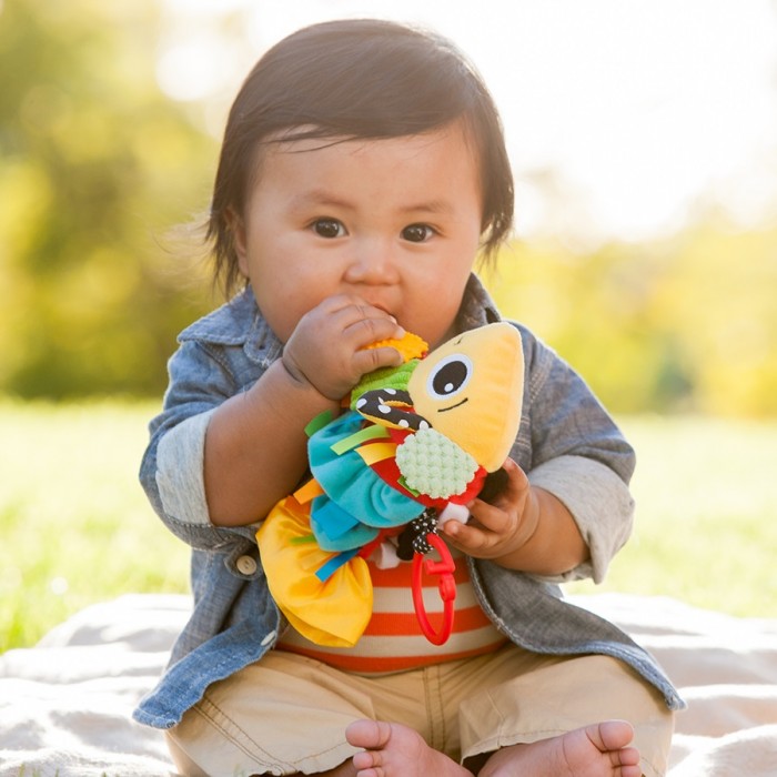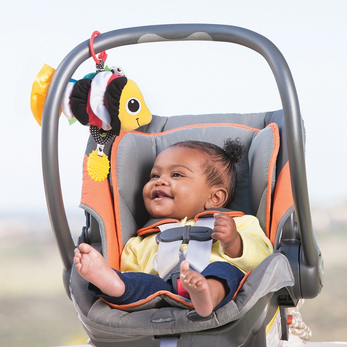 Прикрепите игрушку на детском автокресле, коляске и дугах игрового коврика или просто дайте малышу в руки.