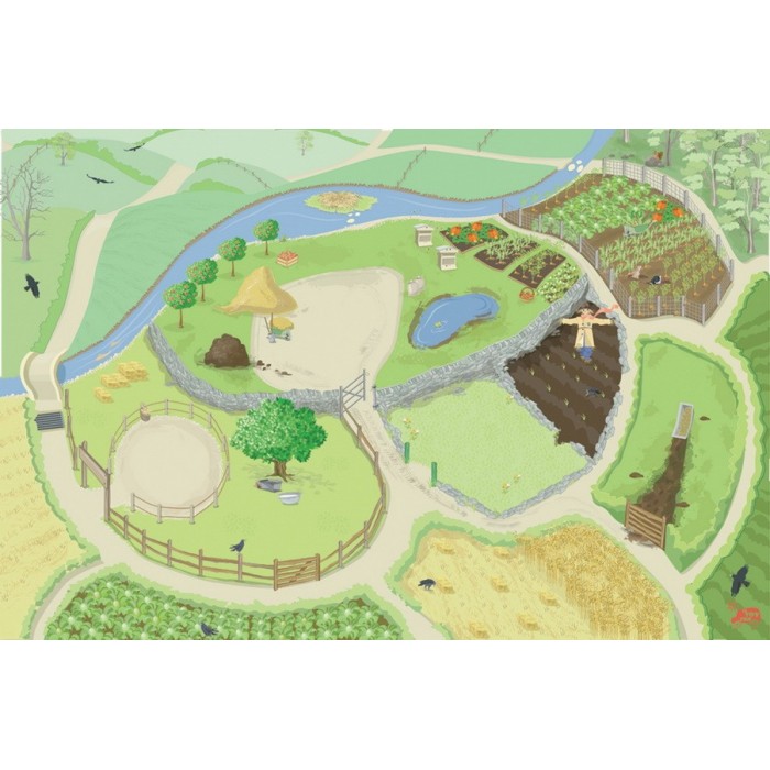 Если ваш ребенок любит играть фигурками животных, сделать игру еще интереснее и познавательнее поможет развивающий коврик «Ферма». Размер коврика 120 х 80 см позволяет разместить на нем множество игрушек. На поверхности нанесен четкий и яркий тематический рисунок. Коврик изготовлен из высокопрочного материала – полиэстера с противоскользящей прорезиненной основой. Представленный на нашем сайте коврик «Ферма» разработан специально для тематических игр загородного хозяйства.