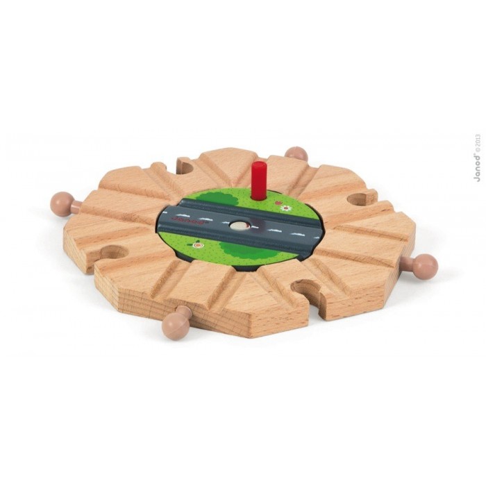 Элемент для организации кругового движения, изготовлен из натурального дерева. Рельсы присоединяются к нему по принципу пазла.