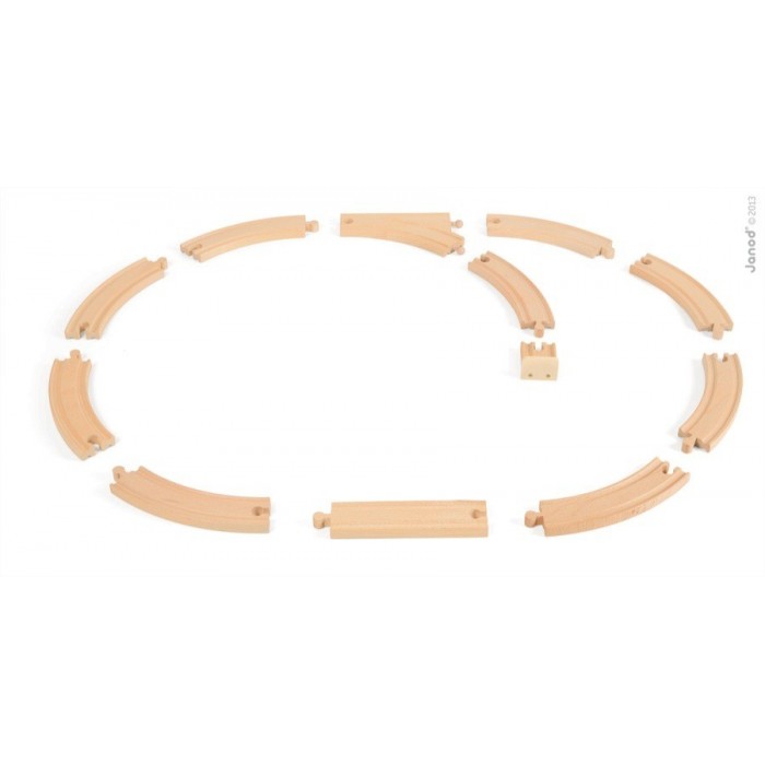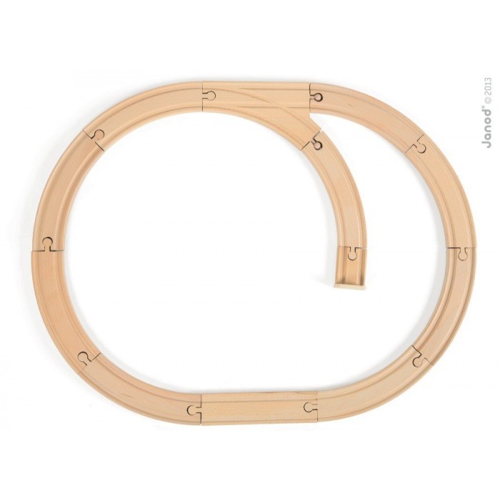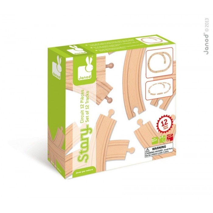 Набор деревянных треков железной дороги с запасным путем, производства французской компании Janod, предназначен для детей от 3 лет. Набор из 12 треков, изготовлен из натурального дерева. Рельсы соединяются по принципу пазла, в комплект входит элемент для строительства запасного пути. Если у Вас уже есть комплект железной дороги, то Вы сможете при помощи дополнительных треков увеличить её протяженность, а так же изменить конфигурацию. Дополнительно можно приобрести поезда на магнитиках, наборы машинок с животными или фигурками людей. Игра станет еще более интересной, если воображаемый город вашего малыша будет расширяться и пополняться новыми жителями.
