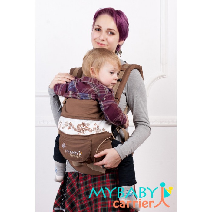 Слинг-рюкзак MY Baby Carrier Шоколадный с вышивкой "Бабочка"