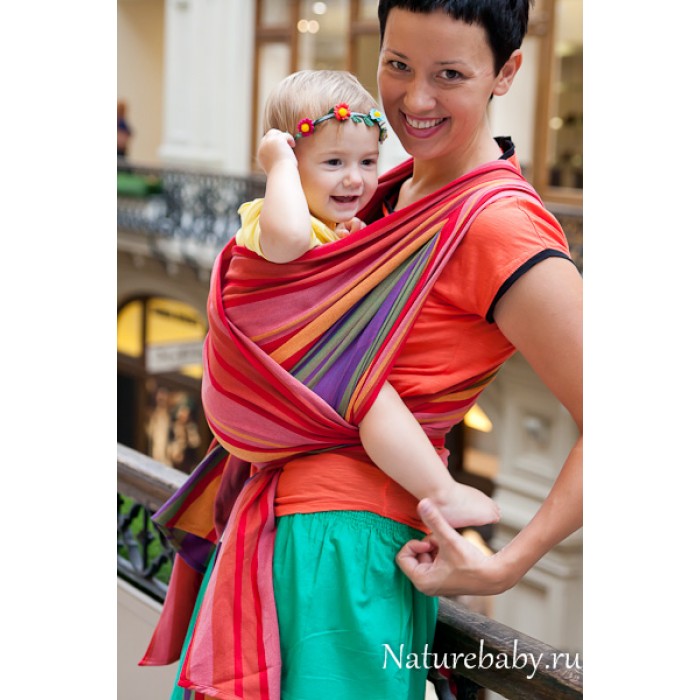 - слинг имеет метку середины и различно окрашенные края для удобства завязывания