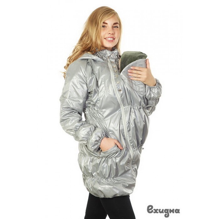 Отличный вариант для практичной мамы. Можно носить как куртку для будущей мамы - благодаря резиночкам по бокам и шнуровке на спине она хорошо под гоняется под любой животик. Со специальной вставкой "Вивьен" превращяется в слингокуртку - можно носить вместе с малышом, И, наконец, куртка для обычной мамы.