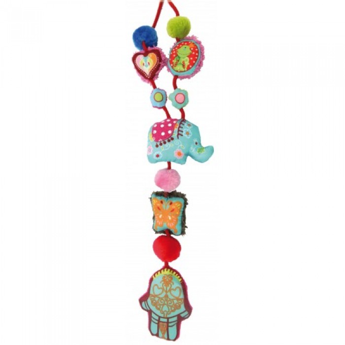 Даже самый непоседливый малыш сразу увлечется игрой с нежными текстильными частями колье.