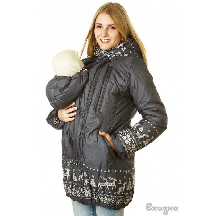 Утеплитель - термофинн 200. Подкладка - полиэстер. Комфортная температура ношения без ребенка -15С. Комфортная температура ношения с ребенком (в слинге под курткой) -20С.