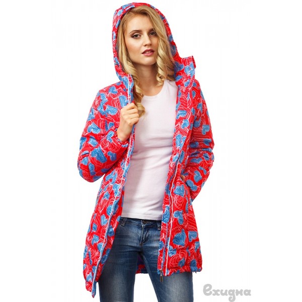 Молнии на груди замаскированы — сделаны в цвет ткани, остальные молнии в куртке — контрастные и яркие. Также в куртке использованы контрастные кантики — еще одна изюминка!